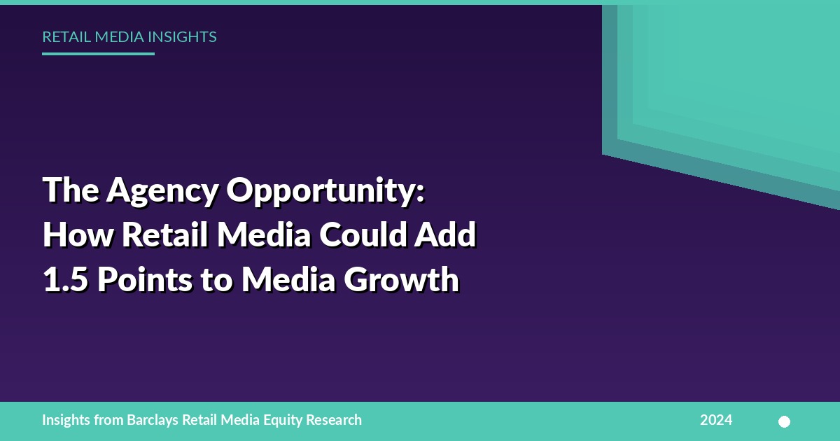 Scenario analysis suggests retail media could add approximately 1.5 percentage points to agencies’ average media growth rate — taking average agency group organic growth from 3.5% to 3.9% in 2025, and from 3.0% to 3.4% in 2026. These represent incremental growth in a category with higher margins than traditional media planning and buying. Publicis and Omnicom are best positioned, with Publicis ahead on data infrastructure (Epsilon, CitrusAd) and Omnicom ahead on commerce execution (Flywheel Digital).
