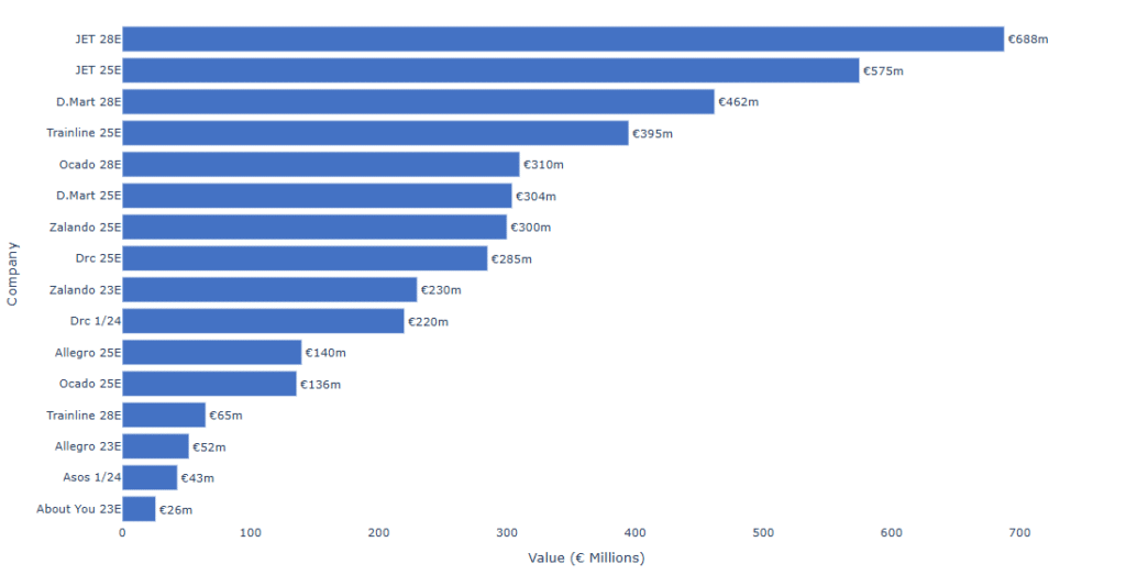 We see significant potential for margin accretion in our coverage. That said, we think this incremental revenue / EBITDA may potentially not drop through, but may instead be reinvested in the customer proposition or additional advertising to drive volumes, which makes sense, in our view. The actual contribution of retail media to total EBITDA may thus be lower. Either way, we view the strong growth in high-margin revenue as a very positive development for our companies, giving them more flexibility in the balance of managing margins and driving growth.